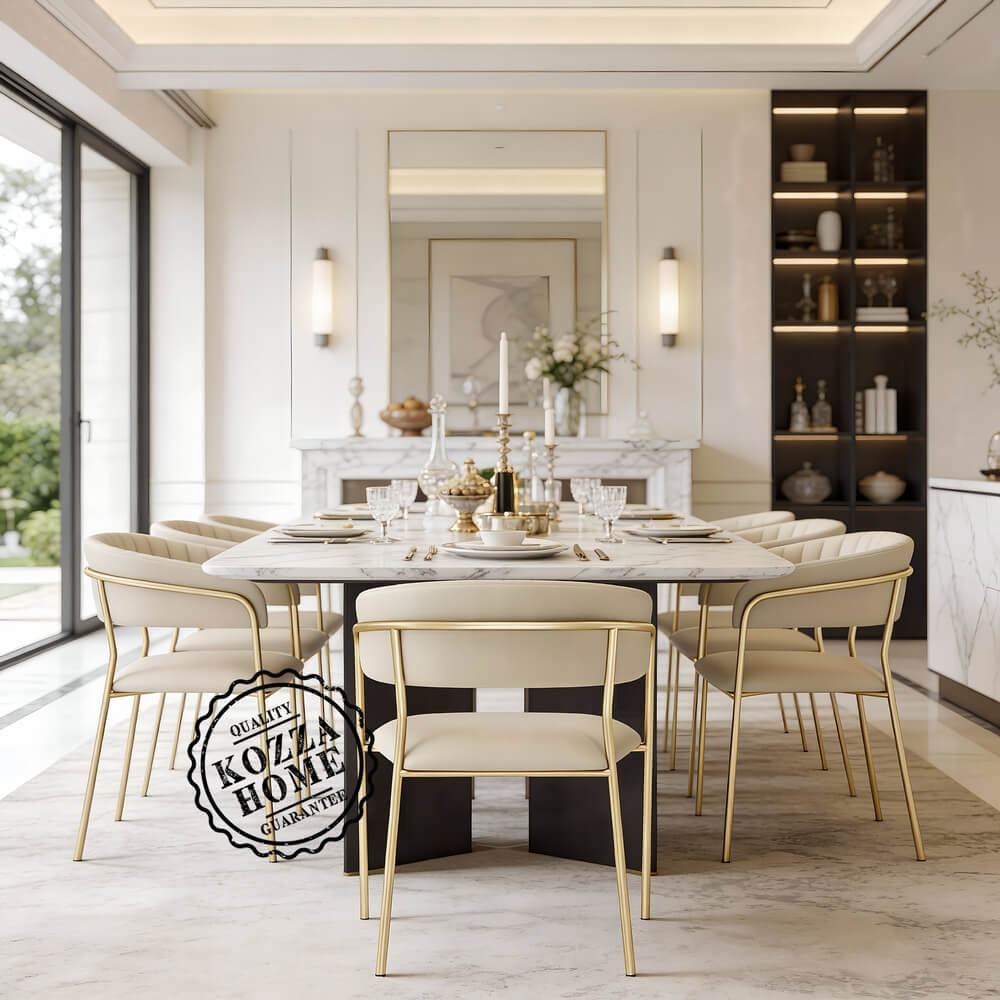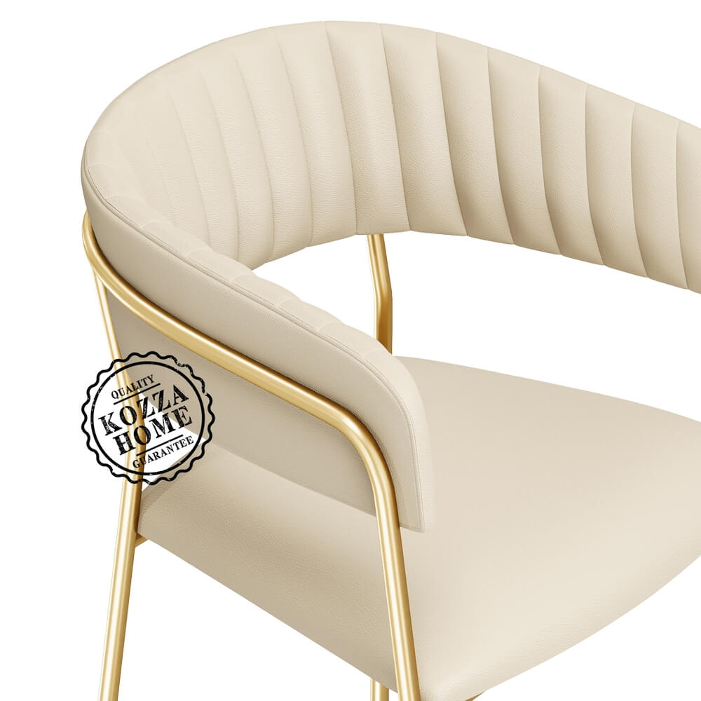 İncelemekte olduğunuz ürün özel tasarım ve yerli üretimdir. Ürünün metal gövdesi darbe dayanımı yüksek gold renk fırın boyadır. Döşemeli kısımlarda suni deri kullanılmıştır. Ürün siparişiniz üzerine size özel olarak hazırlanmaktadır. Ürünün temizliğini aşındırıcı içermeyen ıslak bezle yapabilirsiniz. Diğer renk ve döşeme seçenekleri için irtibata geçiniz.