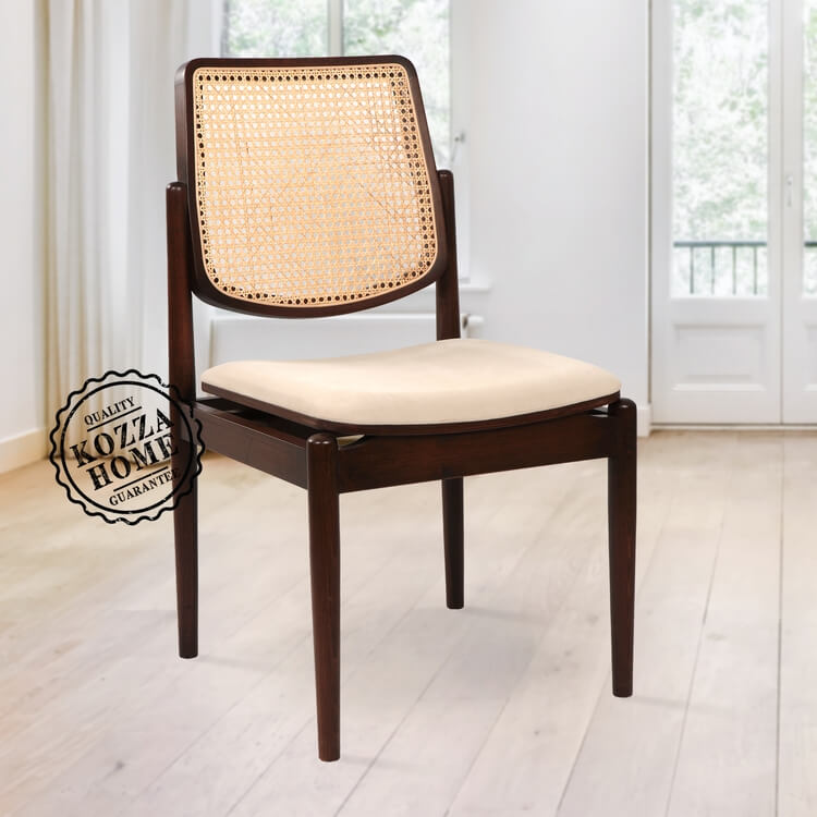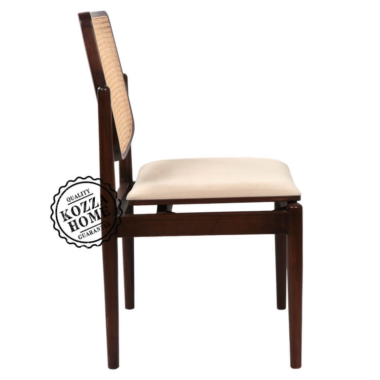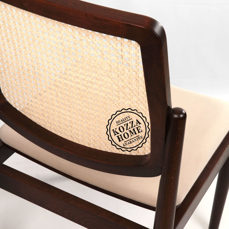İncelemekte olduğunuz ürün bir KOZZA HOME tasarımıdır. Ürün gövdesi 1.sınıf fırınlanmış masif gürgen ağacı -sırt kısmı ise ithal doğal hasır kullanılarak üretilmiş olup, ceviz renk cila uygulanmıştır. Döşemeli kısımlar kadife kumaş ile kaplanmıştır. Ürün siparişiniz üzerine size özel olarak hazırlanmaktadır. Ürünün temizliğini aşındırıcı içermeyen ıslak bezle yapabilirsiniz. Ahşap kısımların tamamı kısa süreli sıvı temasından etkilenmeyecek şekilde vernikle koruma altına alınmıştır Sandalye Ölçüleri ↓| 48 cm x 46 cm |